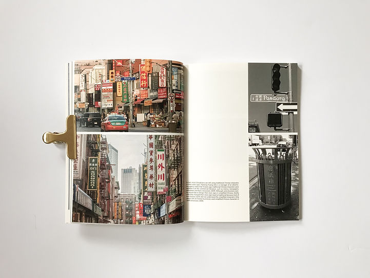 characters. The aim of this thesis is to bring an awareness to the public that traditional Chinese characters are important and recover the lost meaning in simplified Chinese characters. The design idea of the thesis book cover is to recover the lost strokes on the inside cover.